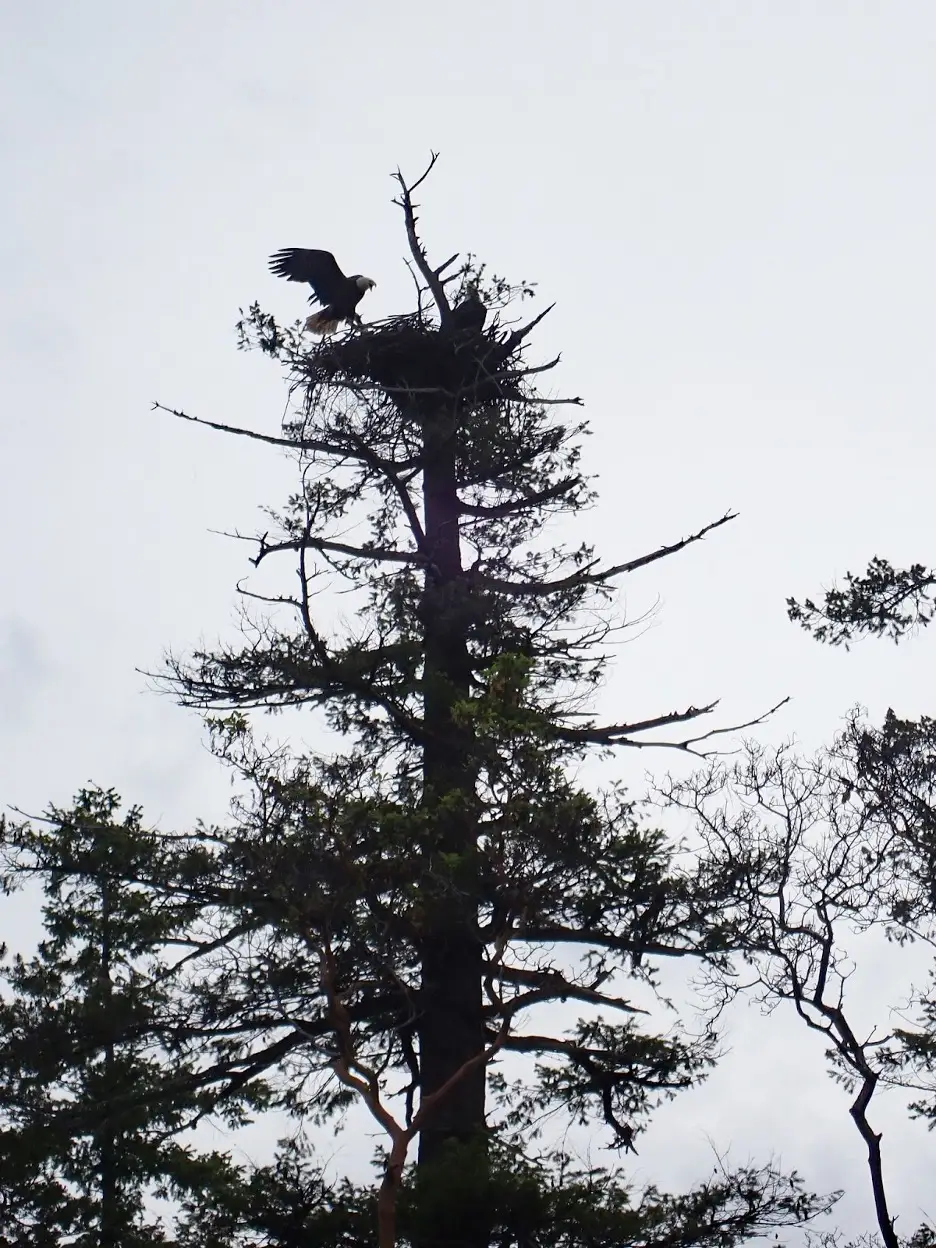 We crossed Whale Passage to Frederic Point on Read Island, where we were treated to the spectacle of a couple of active eagles in a nest high up on the point.  We looked at the campsite on this point, which is listed on the BCMT map, completed a circuit of Evans Bay (Read Island), and stopped for lunch.