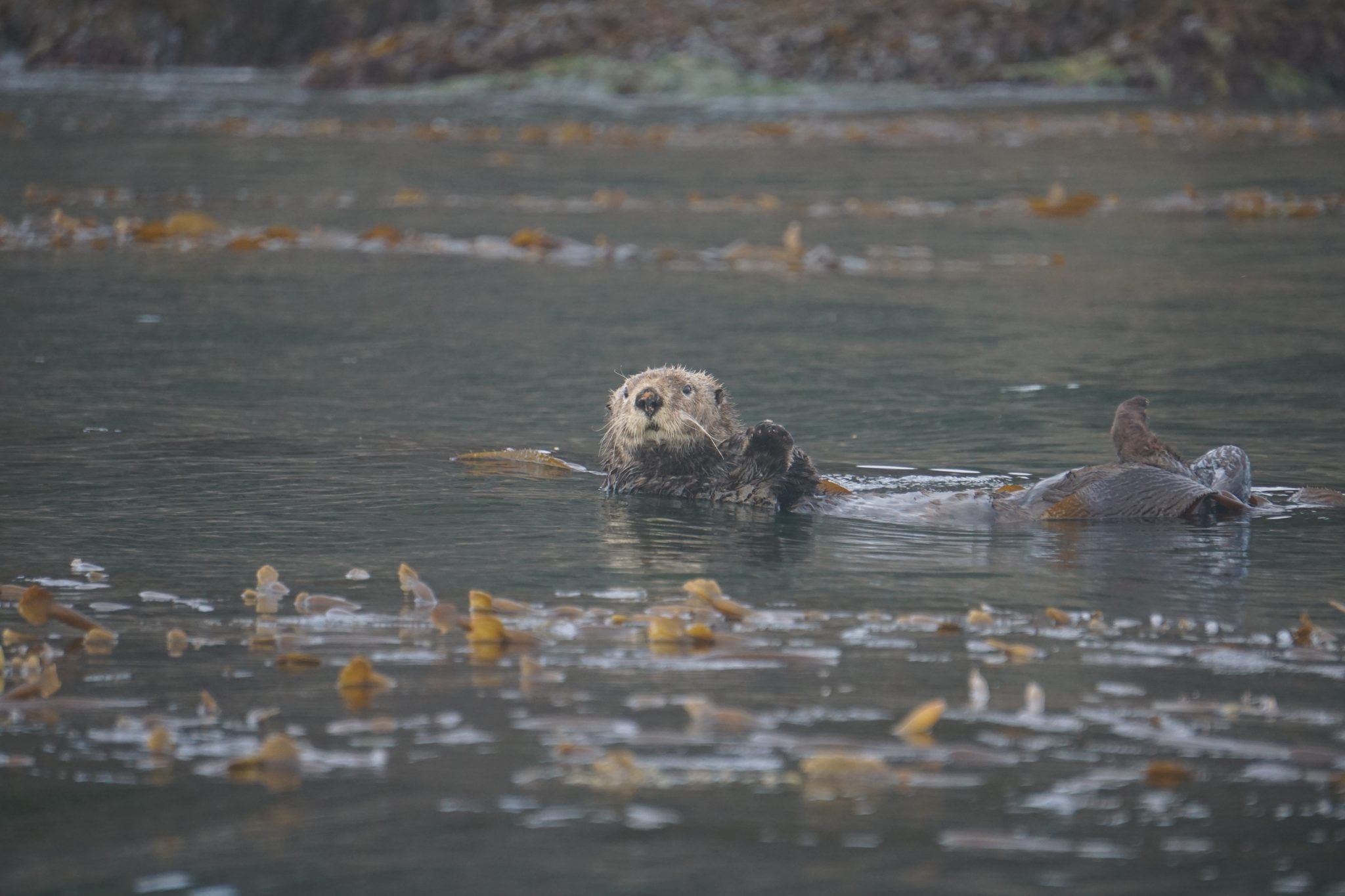 Day 24 was a magical day of whales. Almost as soon as we launched, we were surrounded by the sounds of breathing humpbacks, and could see two pods of resident orcas in the distance! We paddled parallel to the orcas for a while, and while one pod diverged, the other turned to cross the channel toward us! We rafted up to watch, and they swam past at a distance of a few hundred metres, silhouetted against the distant blue mountains of the mainland. After that encounter, we saw at least five humpbacks in the next few hours of paddling, including one tail fluke just 75 m away! We were also greeted by a group of about 20 adorable sea otters: the first raft we’d seen so far.