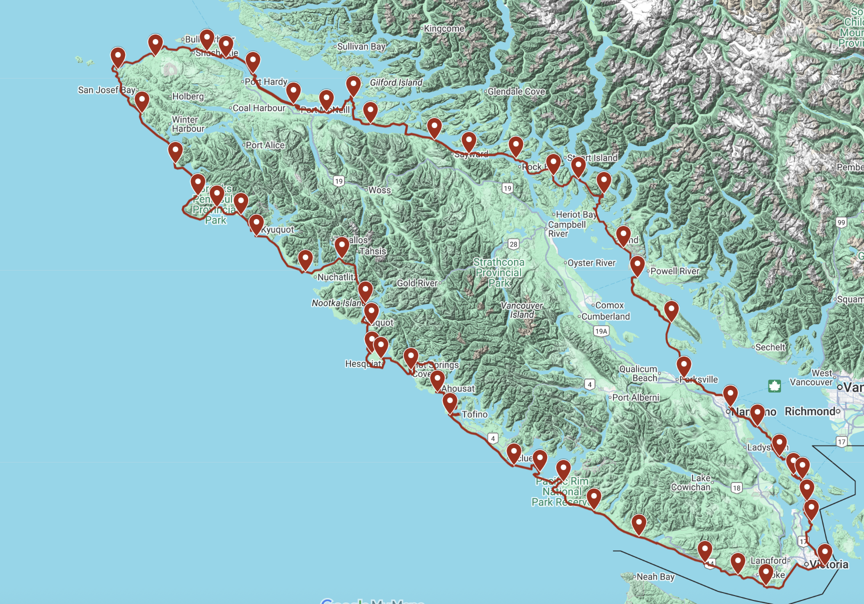 On July 6, 2025, Clara Hudacin and I pushed off a quiet Salt Spring Island beach and took the first of over one million paddle strokes that would take us around Vancouver Island. It was a sunny, calm afternoon. Fifty-eight days later, after paddling 730 nautical miles (1,350 km), our bows scraped up onto that same beach to complete a trip that I had been dreaming of for more than four years. While it’s difficult to fit all the reflections from nearly two months on the water into one article, I’ve included a few highlights, lowlights, and memories here.