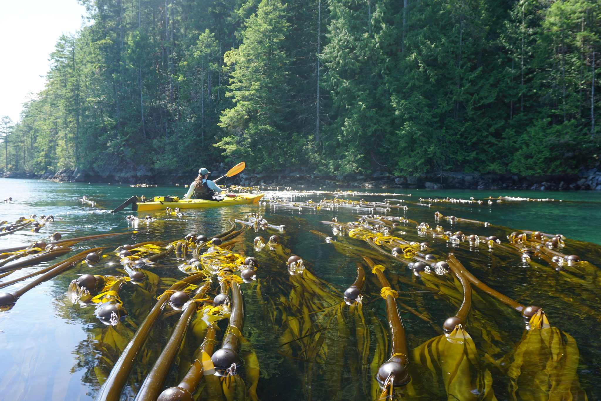 On day nine we awoke to 35-knot winds and crashing white caps, stalling our plans of putting in a big day. Instead, we packed up camp, played cards, cooked dinner early to save time in the evening, and waited. We finally launched around 4 pm as the wind began to die down, and we paddled until 8:15 pm. By 5:30 the next morning we were up, eager to get to Cortes Island, where we met up with our friend Erin who would join us for the next 11 days. After refuelling on some well-earned ice cream and chips, the three of us headed into the Discovery Islands — familiar territory, as I had worked as a kayak guide there a few summers before. Paddling through Desolation Sound and the Discovery Islands was fantastic, with massive kelp forests fanning out below craggy mountains, and porpoises, dolphins, and eagles greeting us every day.