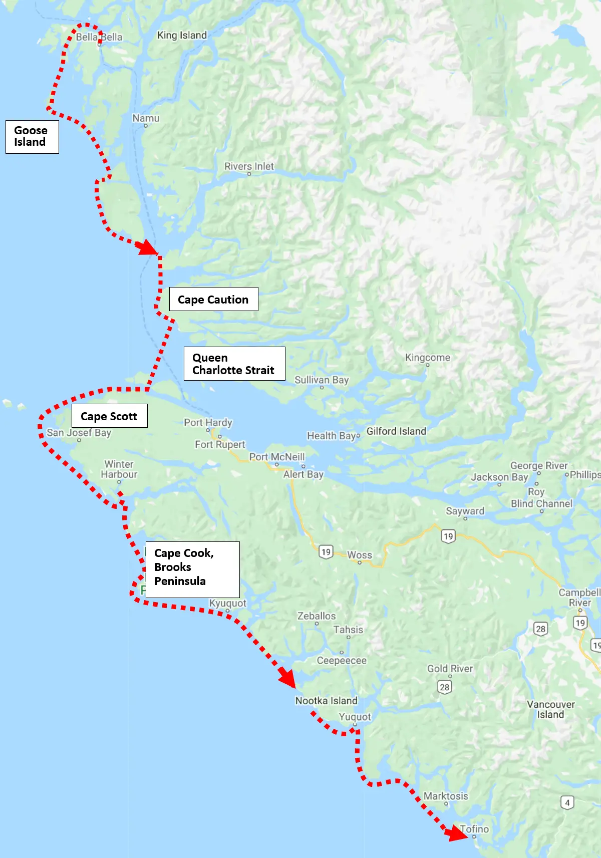 This is Part I of a series of articles about our two-month, 600-kilometer journey down B.C.’s outer coast. Getting so far off the rails on the second day of our journey shook us deeply and called into question our entire approach to the trip. Making our way safely around eight Capes and several major crossings would clearly require fresh thinking. Here are the lessons we took away from our near disaster—what we did right, what we failed to take into account, and what we learned from the experience.