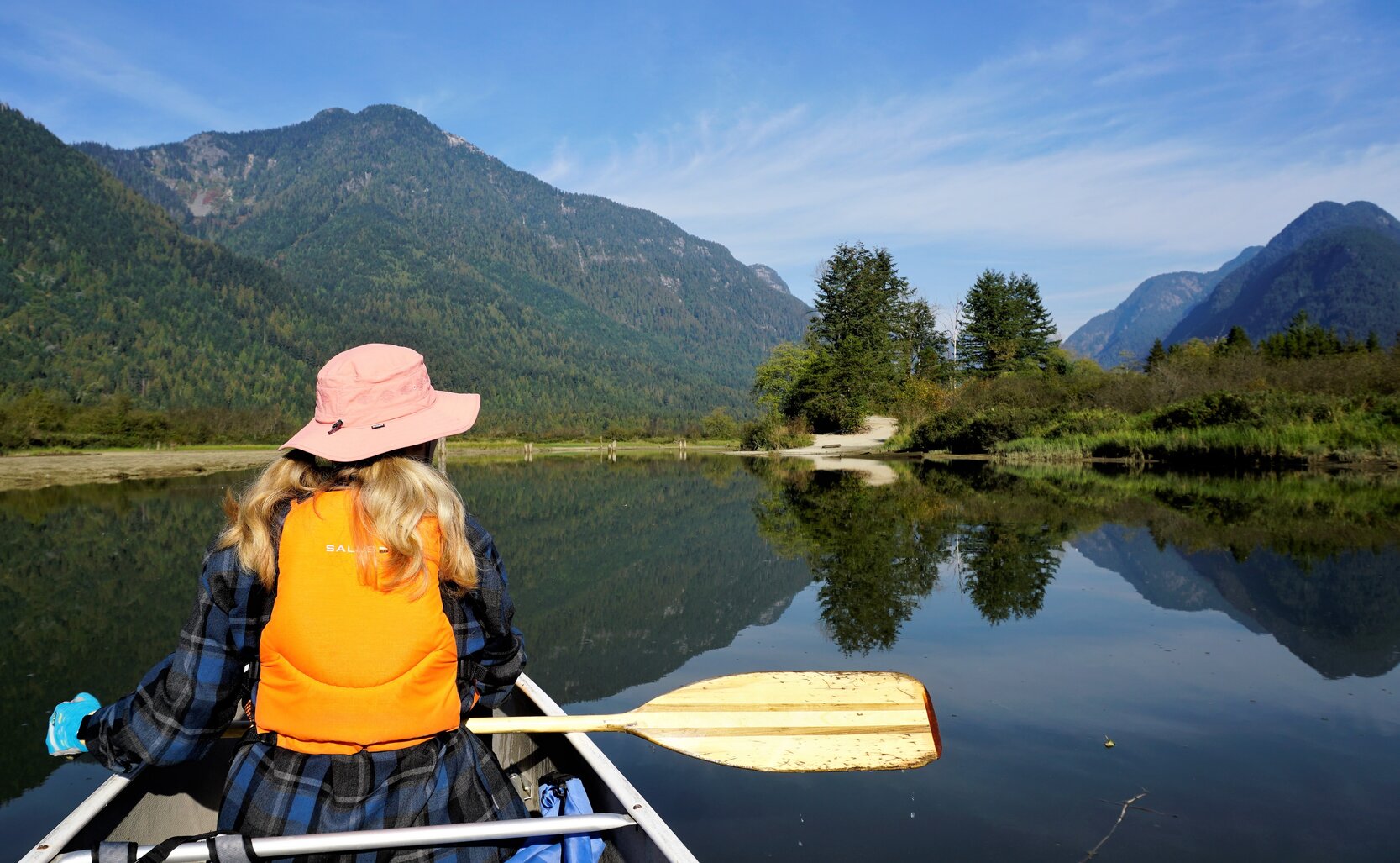 Another family favourite is Pitt Lake, one of the largest tidal lakes in the world. A few years ago, we took a group up the lake to Osprey Creek for an overnight trip. Osprey Creek’s sandy beach feels remarkably like the west coast of Vancouver Island with tides going in and out and a sunset view to the west. With enough time, one could do a 44-km loop through all the campsites around the perimeter of the lake. If you visit, be sure to check out the lake entrance on a marine chart. Follow the boat channel much further into the lake than you might think. Wind-over-tide conditions on the shallow sand bar have proven fatal to other paddlers.