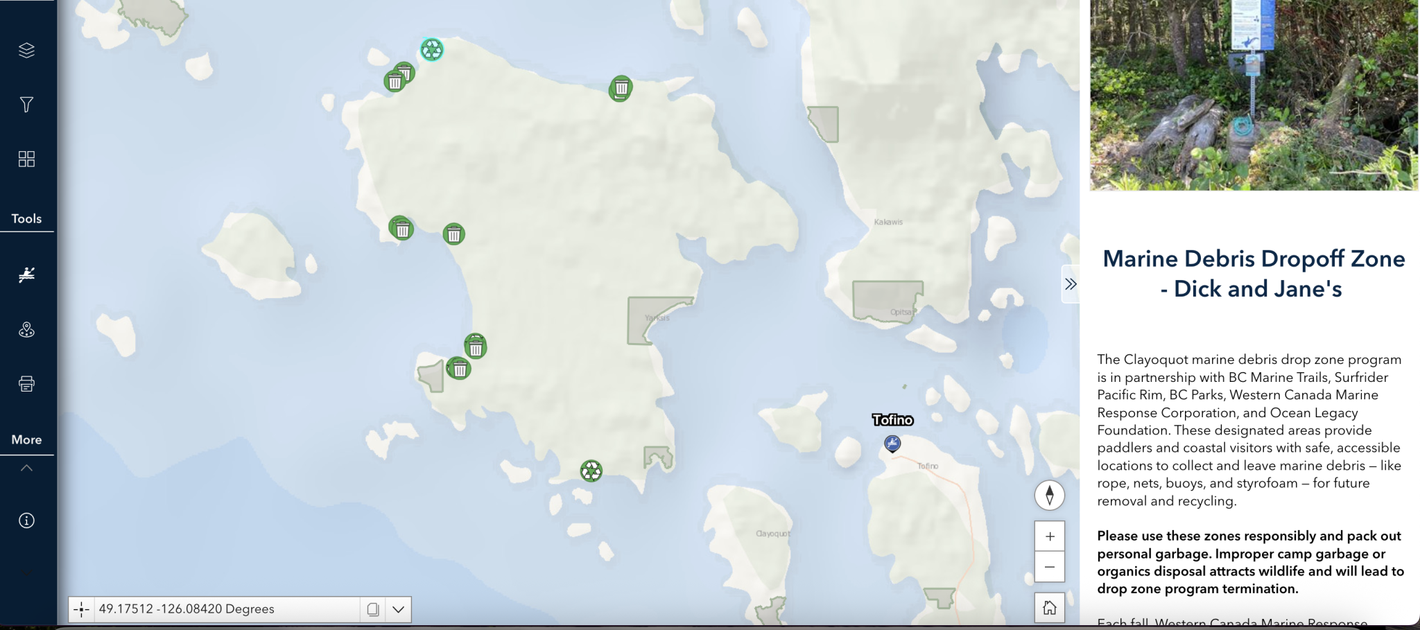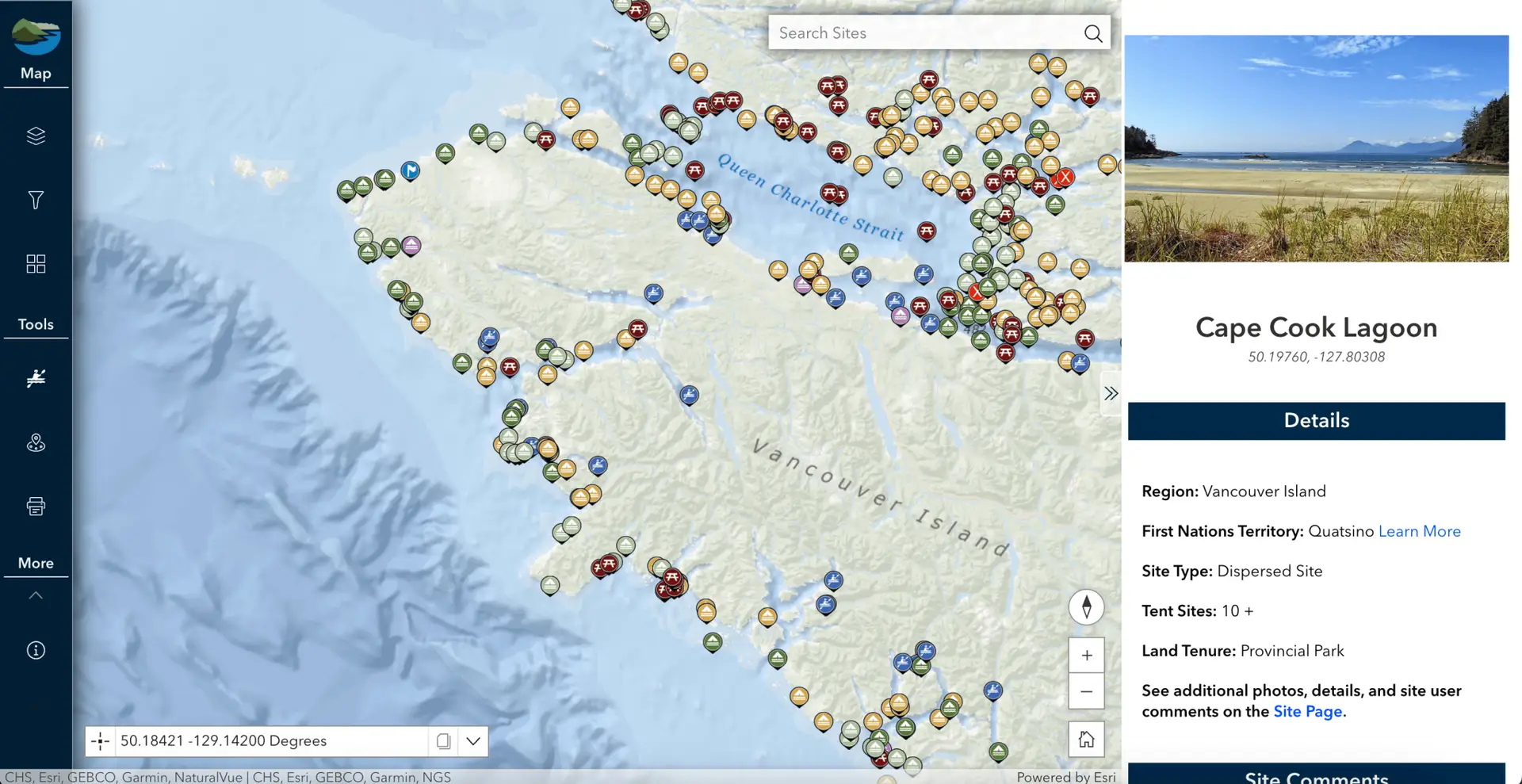 Less clutter and more information — exactly what you need to plan your next expedition. A new scrolling side bar replaces the old site pop-up — here, find site details, First Nations information, and multiple photos (finally!).