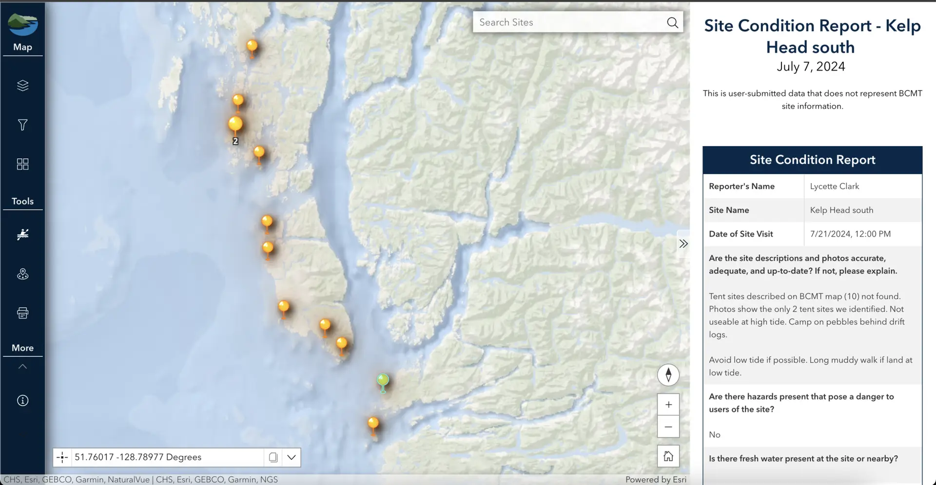 If you visit a reported site, please submit a Site Condition Report. Your observations help BCMT and the Heiltsuk Nation evaluate these sites and provide better info to others.