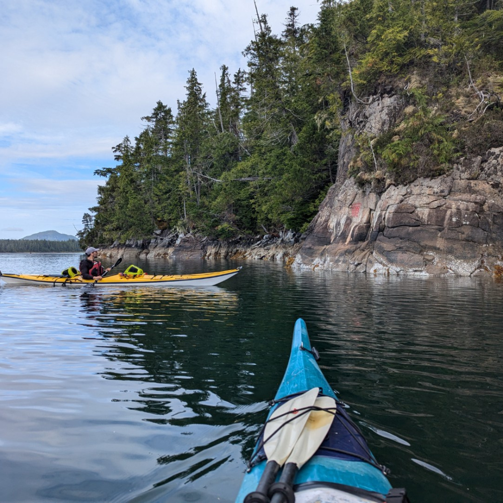 We ended our journey by paddling back to Bella Bella to meet the afternoon ferry. We passed by Heiltsuk rock paintings marking ancestral place, presence, and power.
