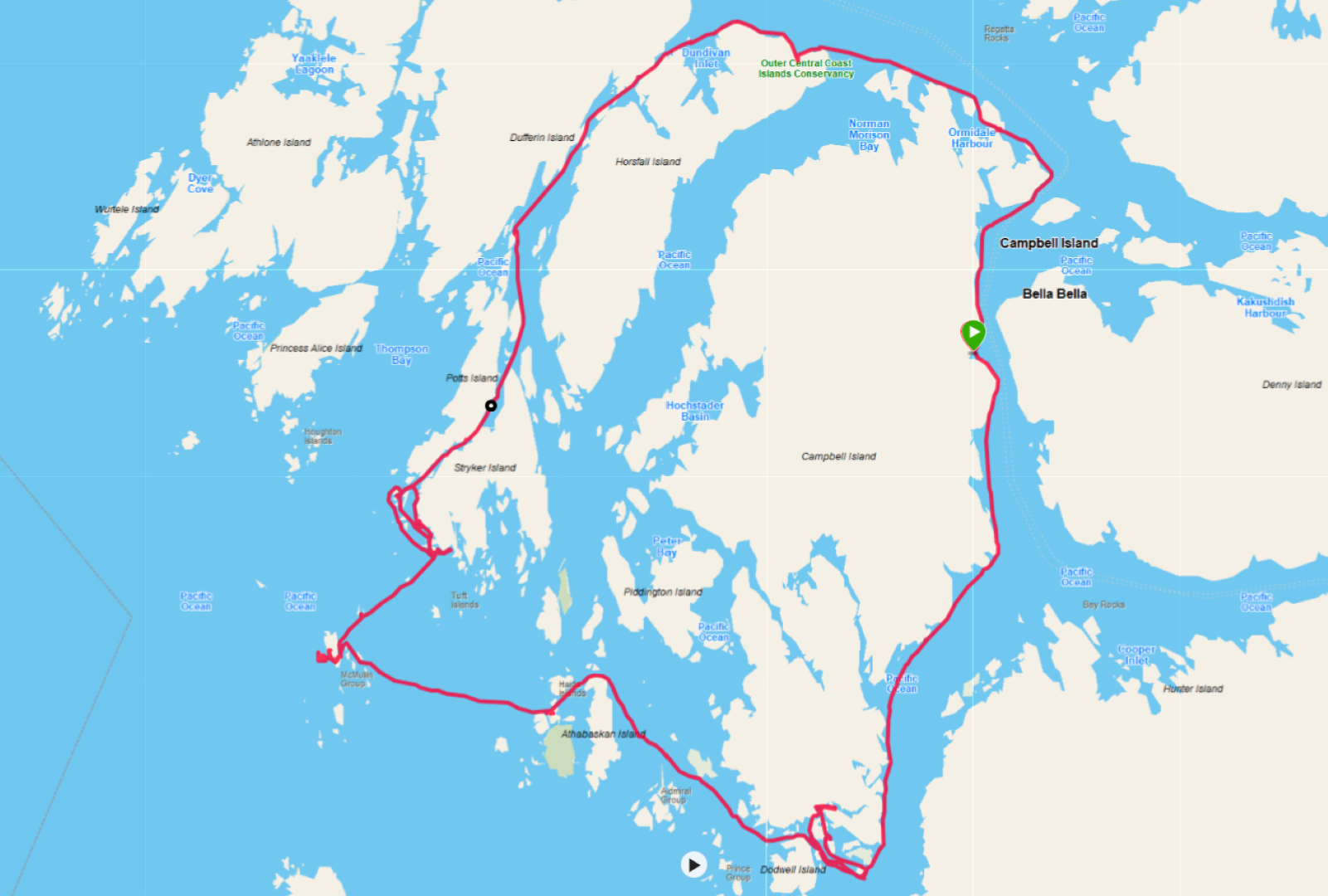 The full route map can be seen below from several views showing perspective relative to the coast.