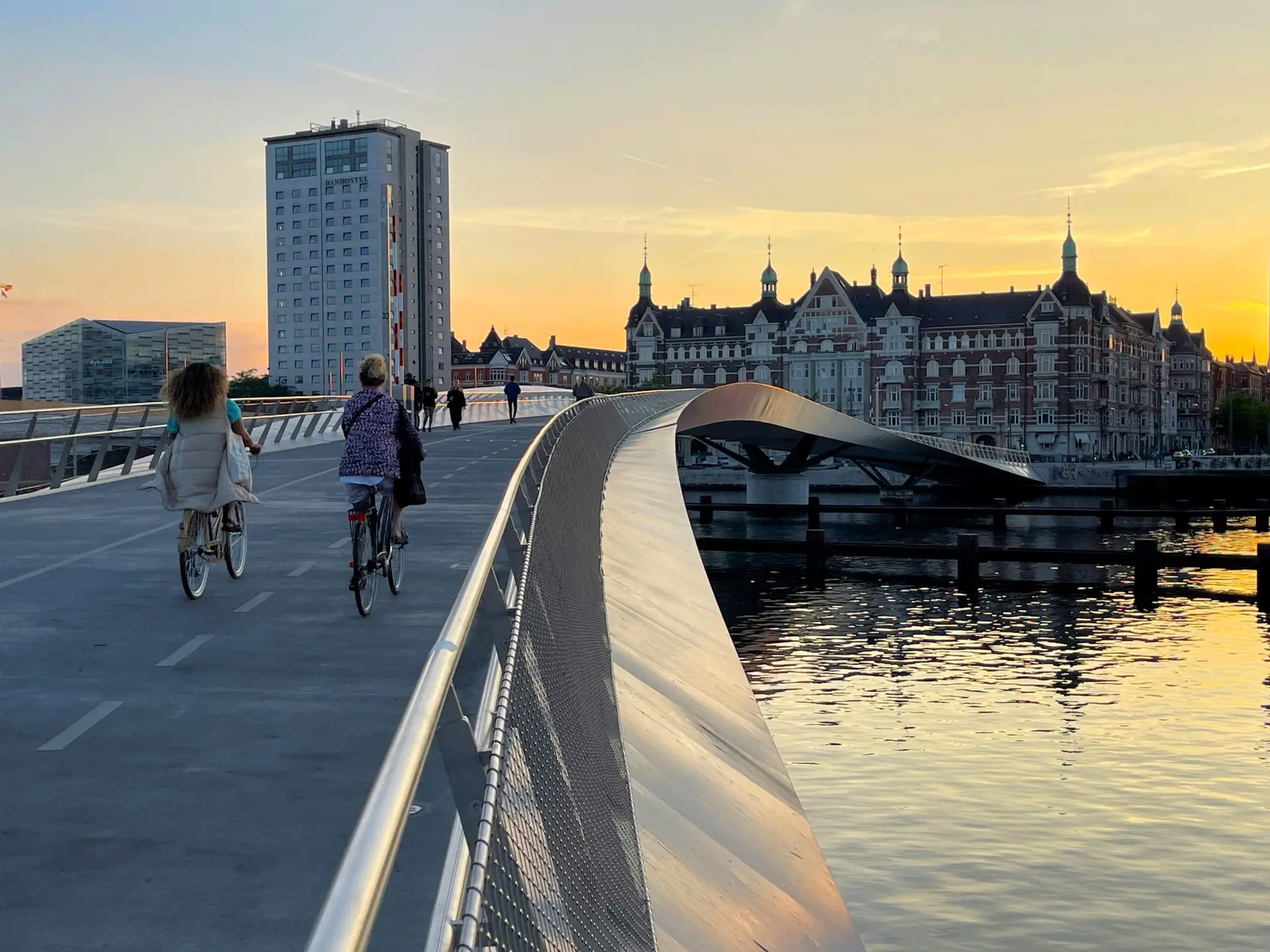 I began with a walk around Copenhagen’s inner harbour. I was struck immediately by the parks, trees, and water features spread throughout the city. Nearly everywhere, a little glimpse of nature is only a block or so away. Tens of thousands of people like me are wandering around the harbourfront on foot, and suntanning, swimming, and paddling seemingly anything that floats. Despite the crowds, no one seems rushed or stressed. Instead, the atmosphere feels festive: relaxed, happy, friendly, orderly, and safe.